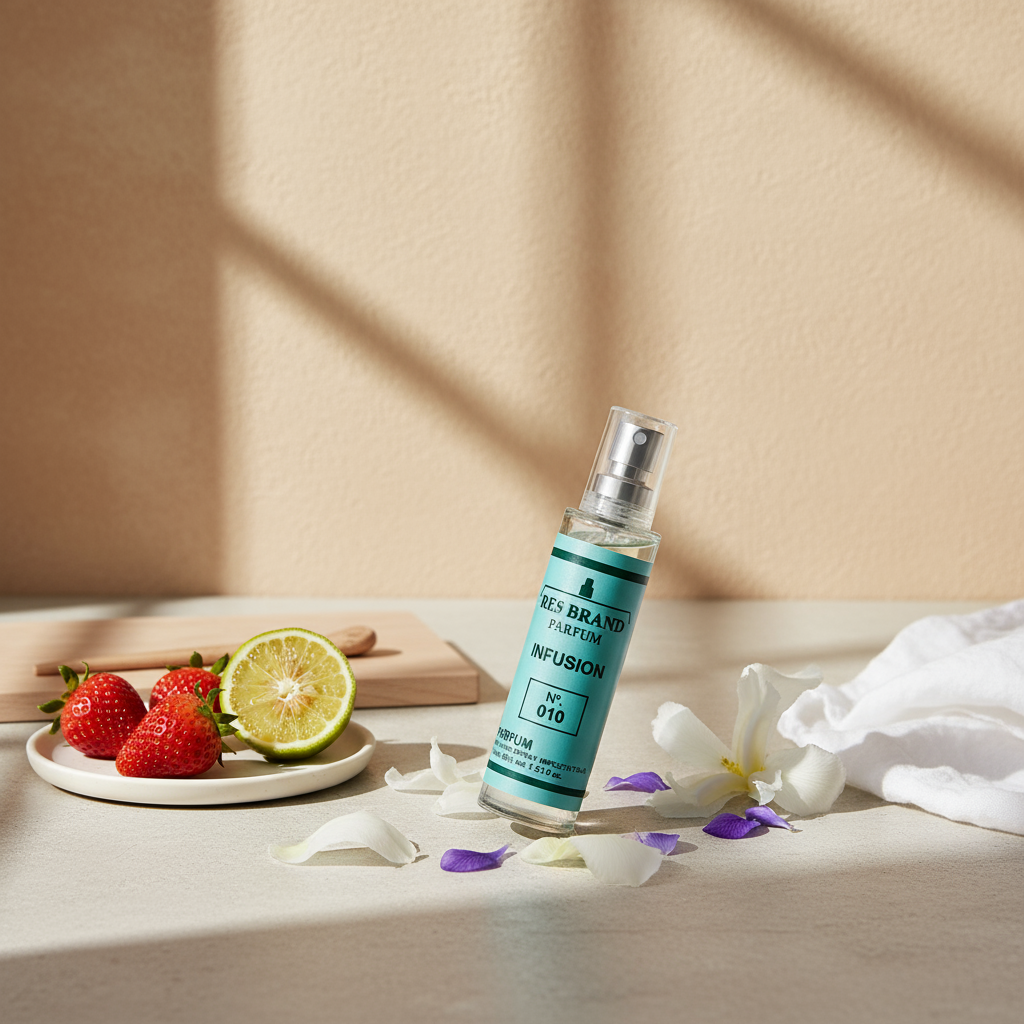 INFUSION da RE9 é uma fragrância compartilhada e atemporal que mistura notas florais e amadeiradas. Com uma abertura leve de bergamota e morango, o coração é uma combinação rica de jasmim e gerânio, transmitindo frescor e elegância. A base com íris e sândalo confere sofisticação e suavidade.